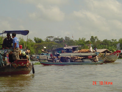 The main means of transportation to cross the river (at least individually or in small groups) and to reach the other side or some of the fish farms or floating houses was these sampan ladies who would row you around.